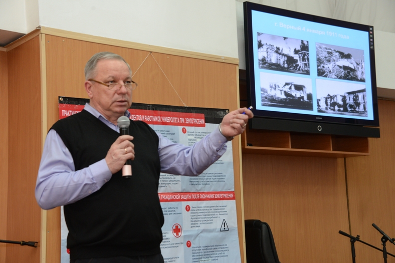 16.02.2018 В университете проведена сейсмотренировка 14 февраля 2018 года в Казахском национальном педагогическом университете в соответствии с приказом ректора Такира Балыкбаева проведена сейсмотренировка «Действия руководящего, командного состава, ППС, студентов, рабочих, служащих университета при землетрясении».