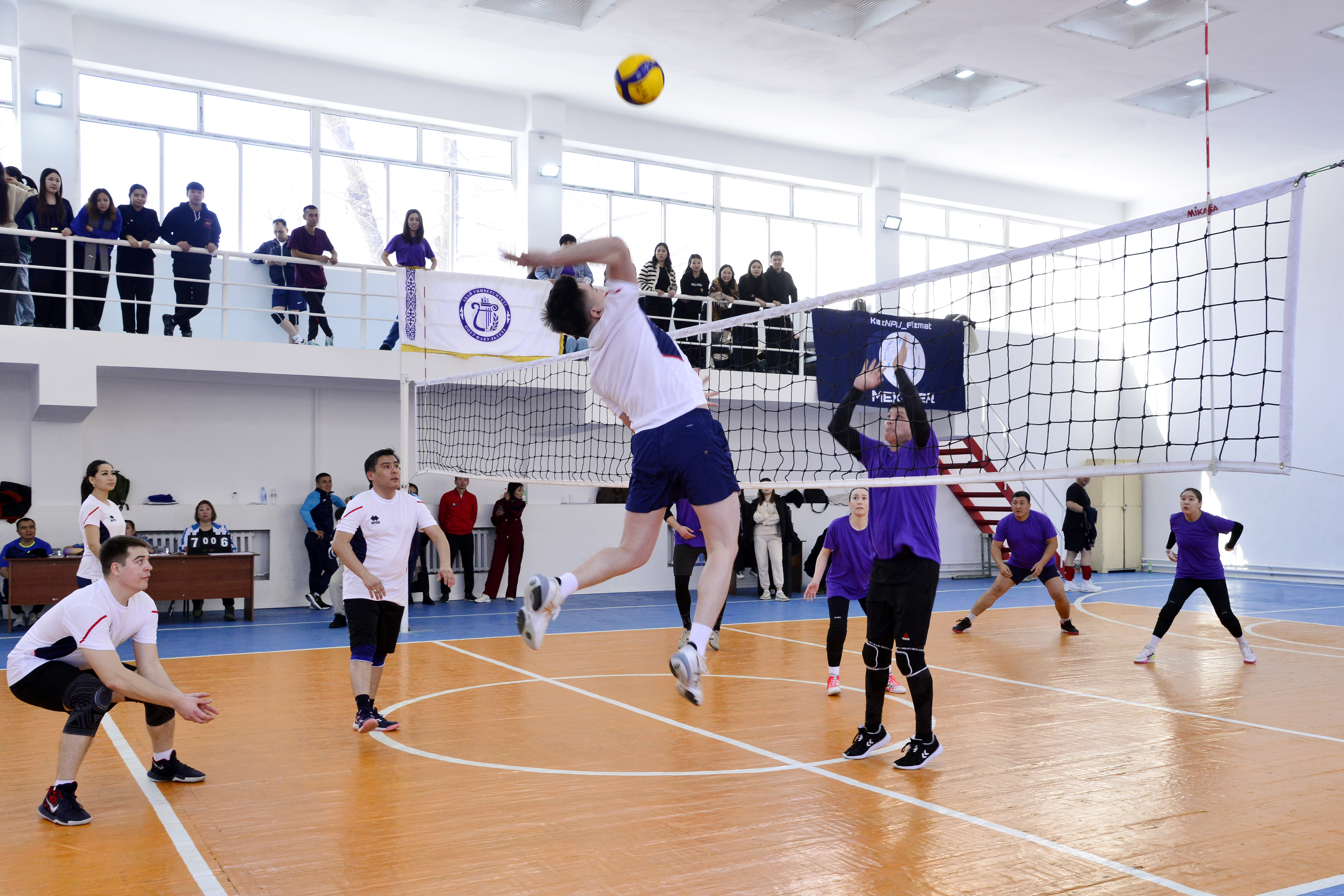 В спартакиаде приняли участие команды факультетов математики, физики и информатики, педагогики и психологии, филологии, естествознания и географии, искусства, истории и права, физической культуры и начальной военной подготовки, а также команда Института Сорбонна-Казахстан и команда Ректората, состоящая из сотрудников администрации университета. Все команды продемонстрировали высокий уровень игры.
