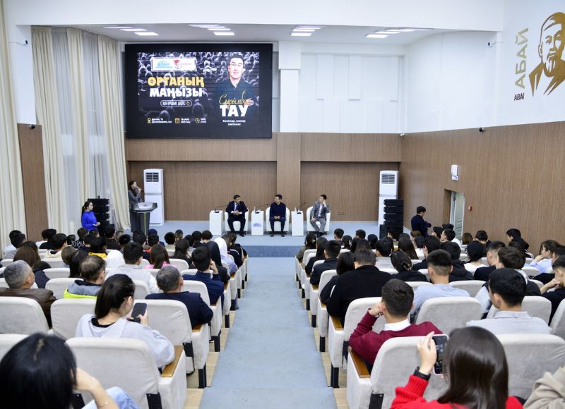 17.04.2025 Встреча предпринимателя Сырымбека Тау со студентами Abai University 15 апреля 2025 года в Казахском национальном педагогическом университете имени Абая состоялась открытая лекция известного предпринимателя, мотивационного спикера, основателя компании «Tау Group» Сырымбека Тау для студентов. Мероприятие было организовано совместно Департаментом по социальному развитию и молодежной политике университета и Педагогической академией.