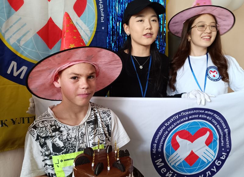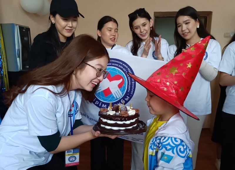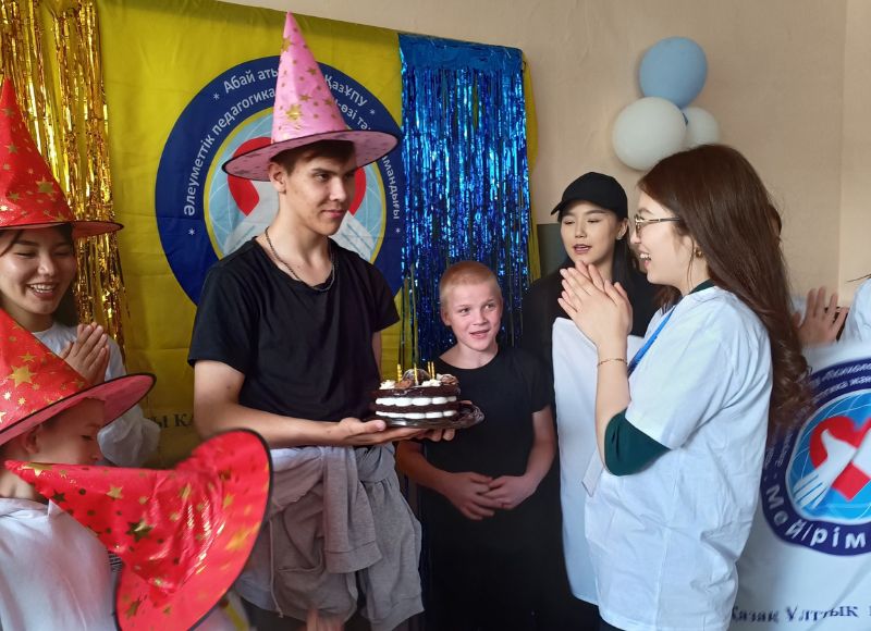 17 апреля 2025 года во время учебной практики студентов 1 курса специальности «6В01801-Социальная педагогика» в Областном центре поддержки детей, находящихся в трудной жизненной ситуации, по аниматорским направлениям клуба «Мейірім» под руководством ассоциированного профессора Ширинбаевой Гулбахиры, студенты-волонтеры в рамках реализации анимационной программы проводили благотворительный бенефис «Сегодня мой день рождения!».