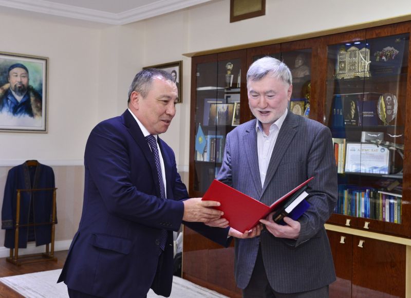 Сегодня, 5 мая 2025 года, председатель Правления - ректор Казахского национального педагогического университета имени Абая Болат Тлеп лично принял лауреата и выразил ему свои поздравления.