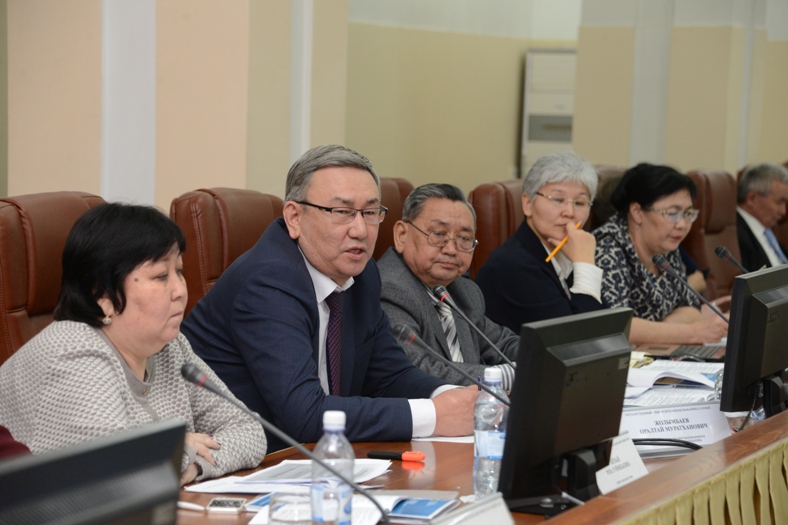 По первому вопросу заседания с докладами выступили проректор по учебно-методической работе КазНПУ им. Абая Габит Кенжебаев, заведующий кафедрой математики и методики обучения математике Государственного университета имени Шакарима г. Семей Оралтай Жолымбаев, заведующая кафедрой педагогики Костанайского государственного педагогического института Бибикуль Утегенова, к.и.н., доцент Казахского государственного женского педагогического университета Роза Айтбай, начальник учебно-методического отдела Каспийского государственного университета технологий и инжиниринга им. Ш. Есенова Ардак Бостанова.