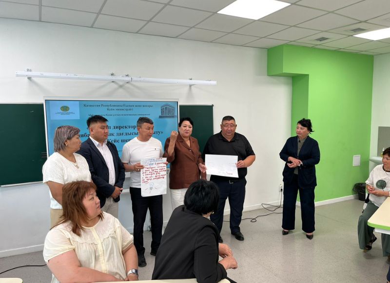 Исполнитель проекта Шынгыс Нурланов акцентировал внимание на развитие успешных моделей директоров - лидеров на основе лидерских навыков, профессор Марфуга Абсатова в групповой работе попыталась разобрать пути и средства реализации инновационных научных проектов в условиях цифровизации, под руководством профессора Шолпан Колумбаевой участники курса успешно защитили программы профессионального развития школ. Доктор PhD, психолог Айгуль Ногаева на основе специально подобранных психологических упражнений, тренингов попыталась развить лидерские навыки руководителей школ.