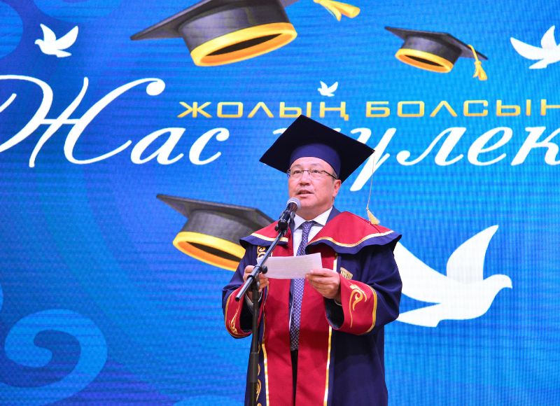 В ходе церемонии с поздравительной речью выступил ректор Болат Тлеп. Он поздравил выпускников с этим значимым днём, высоко оценив их многолетний труд и достижения в учебе. Также ректор пожелал молодым специалистам успехов на профессиональном пути и выразил уверенность, что они будут достойно представлять университет и честно служить на благо страны.