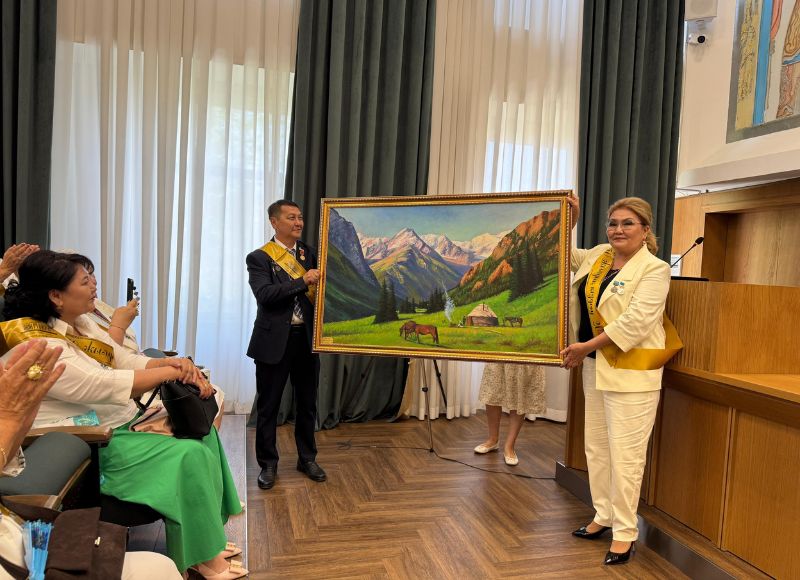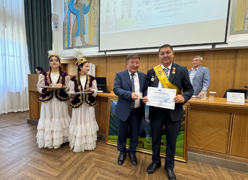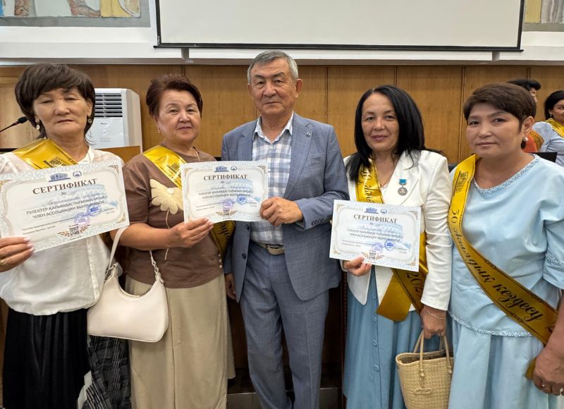 Руководитель Ассоциации выпускников Болатбек Нурбатыров принял всех участников встречи в ряды ассоциации, вручив специальные сертификаты и памятные нагрудные знаки.