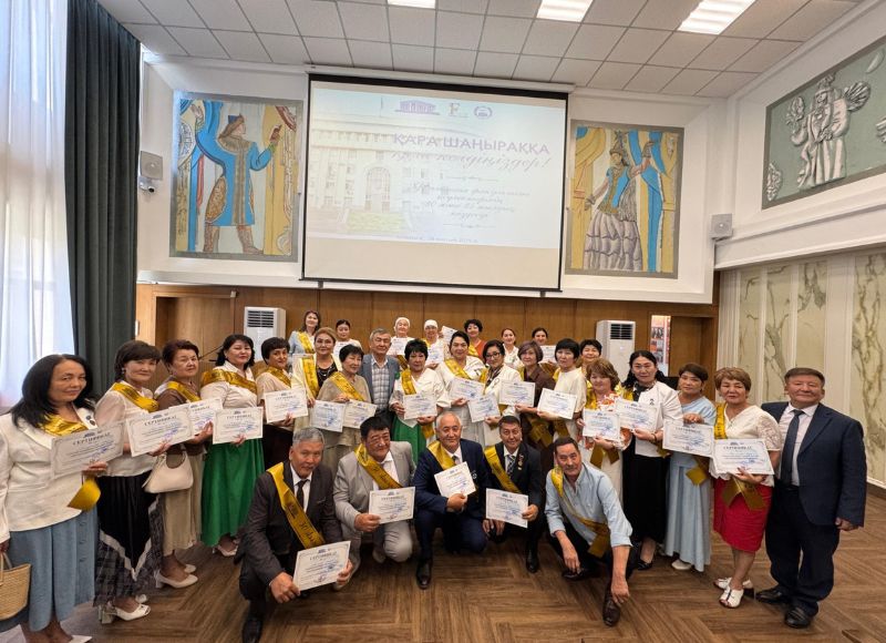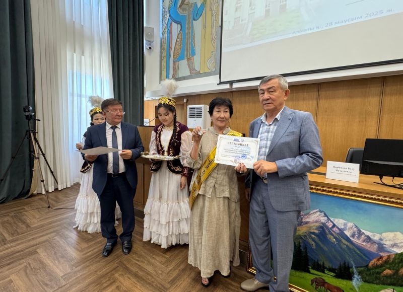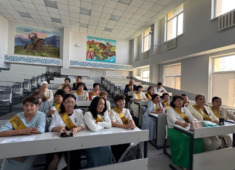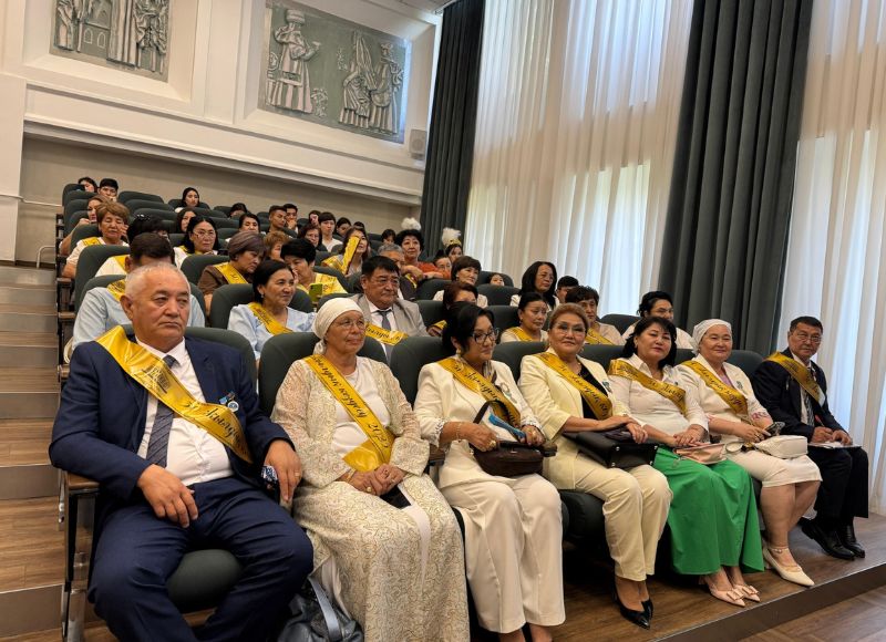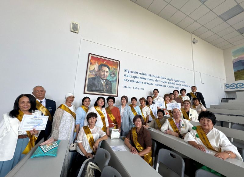 Также с благодарственным словом к преподавателям выступила одна из выпускниц - общественный деятель, выдающийся краевед, мать-героиня и мастер художественного слова Зауреш Демеуколова.