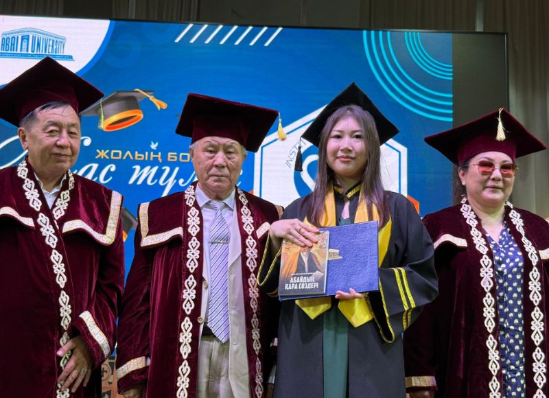 Кроме того, на церемонии вручения дипломов выпускникам в подарок от университета был преподнесён сборник «Қара сөздер» великого поэта Абая Кунанбаева.