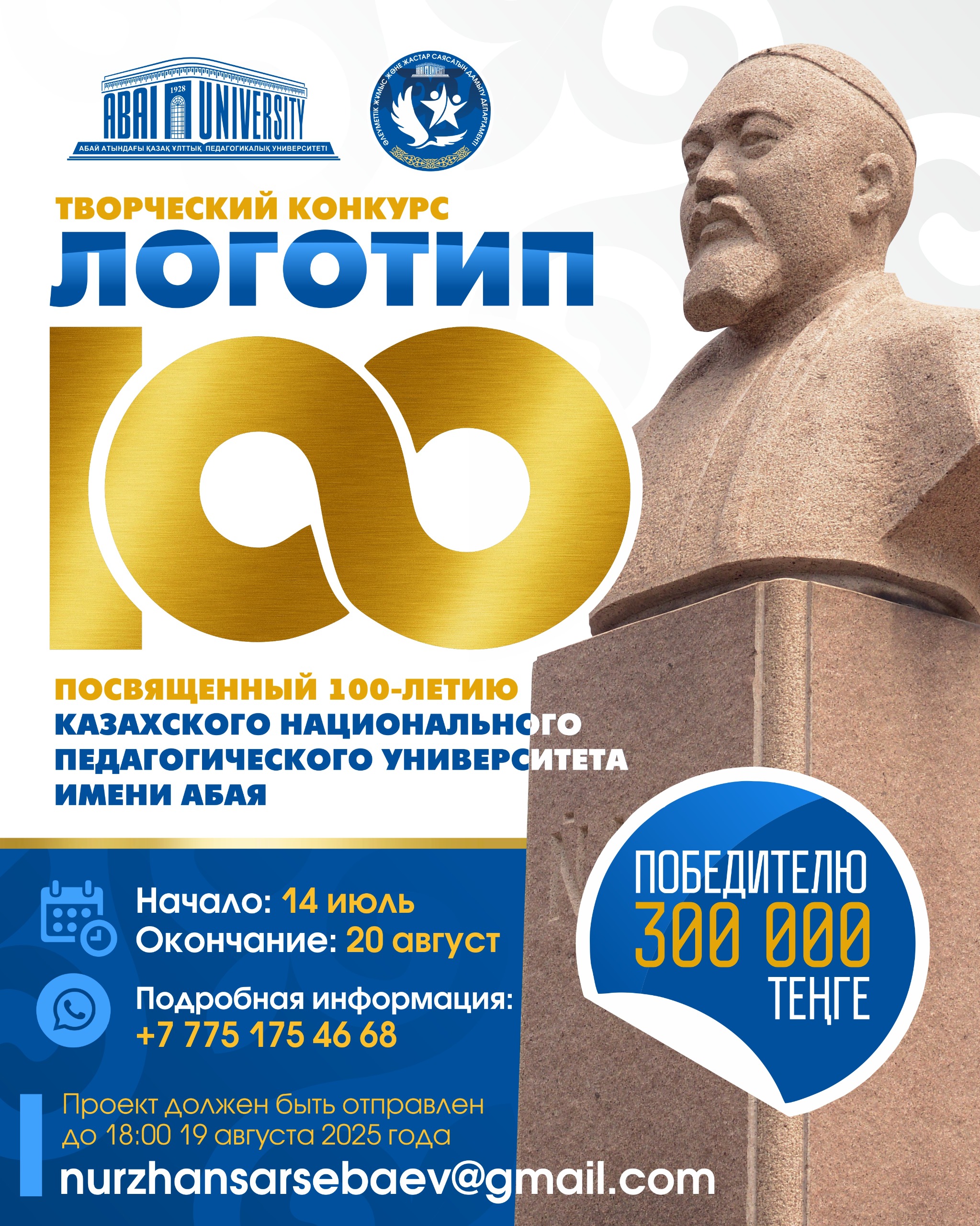 С 14 июля по 20 августа 2025 года Казахский национальный педагогический университет имени Абая проводит творческий конкурс «Логотип-100», приуроченный к 100-летнему юбилею вуза.