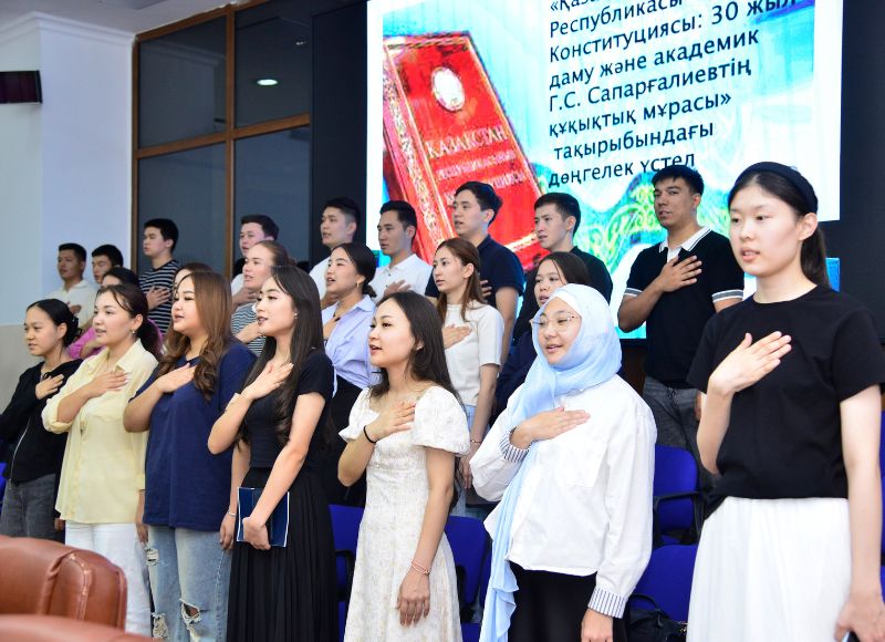 Активное участие в круглом столе приняли магистранты и студенты университета, представив свои научные проекты и исследования, посвящённые 30-летию Конституции РК.