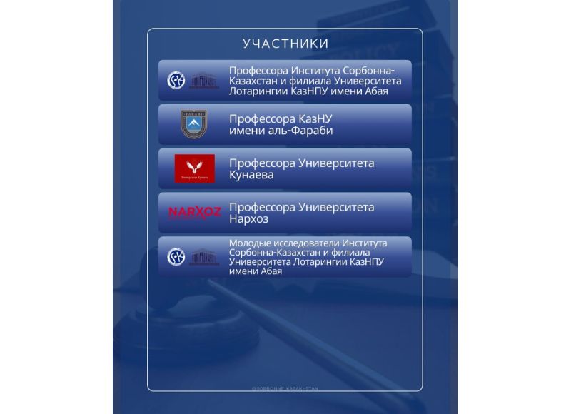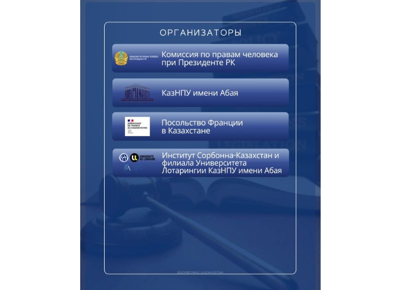 Юридический диалог пройдёт в гибридном формате - офлайн и онлайн, с возможностью свободных вопросов от аудитории молодых исследователей и студентов Института Сорбонна-Казахстан и филиала Университета Лотарингии.
