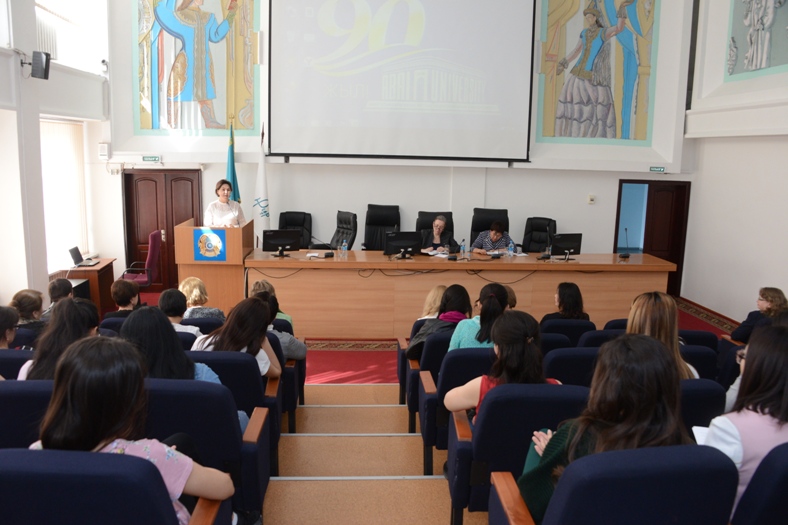 Частый гость кафедры - председатель Ассоциации учителей русских школ Казахстана Наталья Вдовина. В своём выступлении она рассказала об успехах казахстанских школьников на международных олимпиадах по русскому языку. Ассоциация каждый год проводит курсы повышения квалификации для учителей школ с русским языком обучения. Во время летних каникул учителя начальных классов и преподаватели русского языка и литературы проходят стажировку в разных образовательных центрах России.