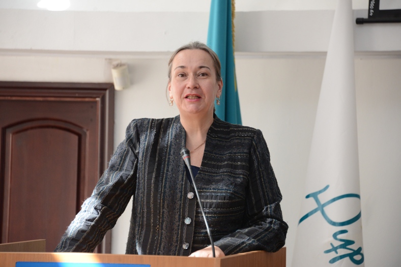 С докладом «Русский язык как плюрицентрический» выступила профессор Дамина Шайбакова. Её выступление показало присутствующим одно из научных направлений изучения русского языка в аспекте социолингвистики.