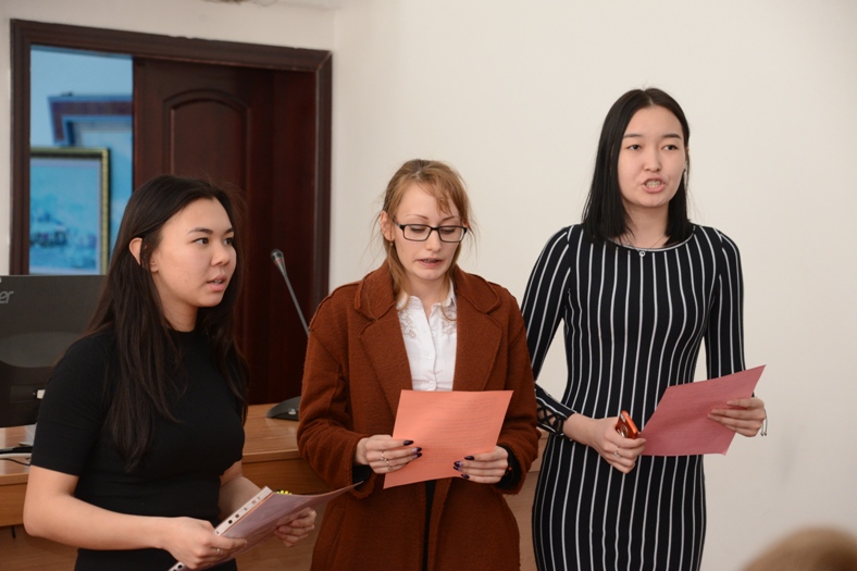 Частыми гостями мероприятий кафедры русского языка и литературы становятся старшеклассники Специализированного лицея № 165. Преподаватель этого лицея - известный в Республике Казахстан учитель-словесник к.ф.н. Марина Асылбекова - выпускница нашего вуза. На этот раз школьники поделились своим пониманием процессов, которые сегодня происходят в языке молодого поколения.