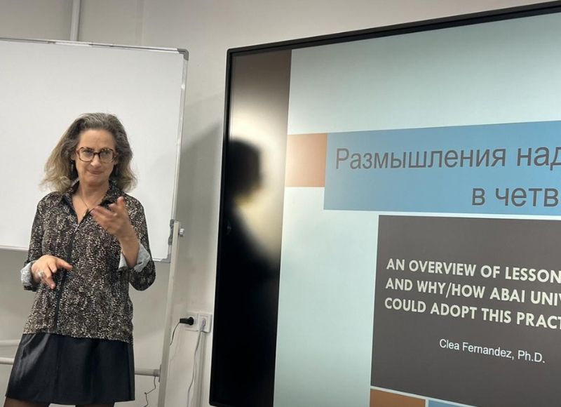 30.09.2025 Доктор Клея Фернандез провела семинар-тренинг по Lesson Study в КазНПУ имени Абая 29 сентября 2025 года Центром педагогических инноваций и Action Research кафедры ЮНЕСКО был организован семинар-тренинг по Lesson Study с участием приглашенного преподавателя, эксперта в области психологии образования Клея Фернандез для менторов-исследователей университета на тему «Более пристальный взгляд на Lesson Study». На семинаре сделан большой акцент на роль и функции менторов-исследователей как ключевых трансляторов практикоориентированных методов исследований как Action Research и Lesson Study на факультетах.