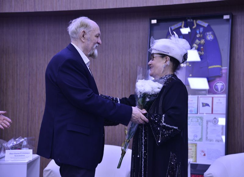 С тёплыми словами выступили председатель совета ветеранов КазНПУ, профессор Берикжан Альмухамбетов, высоко оценивший научный и педагогический труд юбилярши, а также композитор, лауреат премии «ҚазақАК» Владимир Питерцов, прочитавший посвящённое ей стихотворение.
