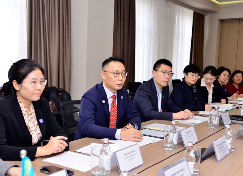 Встреча прошла на высоком уровне и была направлена на развитие международного партнерства в области образования и науки, реализацию совместных проектов по подготовке педагогических кадров, а также расширение академического и профессионального обмена опытом. В состав делегации Циньдаоского колледжа вошли заместитель секретаря парткома, ректор Фу Жуньюн, декан института иностранных языков, директор управления международного обмена и сотрудничества Вен Лимин, партийный секретарь и декан института ювелирного дела Лин Бин, заместитель декана института дошкольного образования Цзю Цзинсян и преподаватель института иностранных языков Гуань Ци. Со стороны Абай университета во встрече приняли участие проректор по академическим вопросам Бану Нарбекова, проректор по стратегии и интернационализации Айгуль Искакова, и.о. директора департамента академических вопросов Айторе Баймурзаева, директор департамента анализа образовательных программ Нуржамал Ошанова, и.о. декана факультета педагогики и психологии Гульмира Ниетбаева, заведующие кафедрами и представители отдела международных программ и сотрудничества.