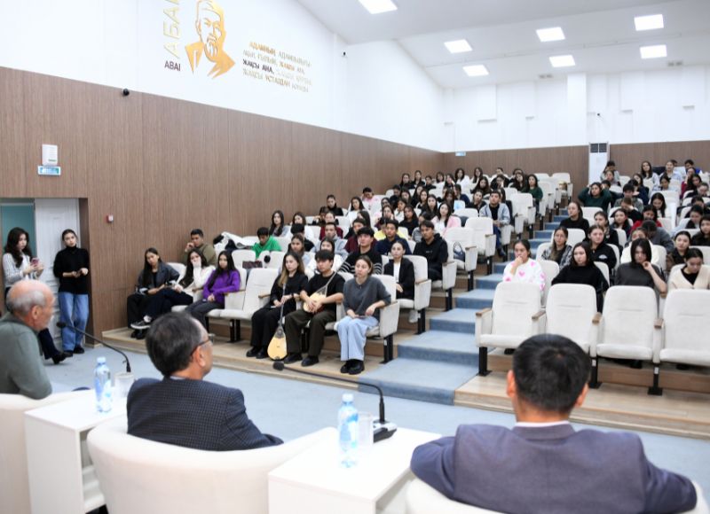 10.11.2025 ПРОШЛА ВСТРЕЧА С ВЫДАЮЩИМСЯ ПИСАТЕЛЕМ В КазНПУ имени Абая состоялся литературный вечер «Тропы опытного писателя», посвящённый 75-летию выдающегося представителя казахской литературы, учёного и педагога, известного выпускника 1973 года Нурдаулета Акыша. В мероприятии приняли участие представители интеллигенции, профессорско-преподавательский состав и студенты. В преддверии юбилея были обсуждены образцовый жизненный путь писателя, его творческое наследие и неувядающие воспоминания, а также значимые произведения. Лауреат международной литературной премии «Алаш», поэт Болат Усенбай рассказал молодёжи о значении идеи «Совершенный человек» в творчестве Нурдаулета Акыша. Талантливые студенты университета исполнили мелодичные музыкальные произведения и прочитали отрывки из произведений писателя.