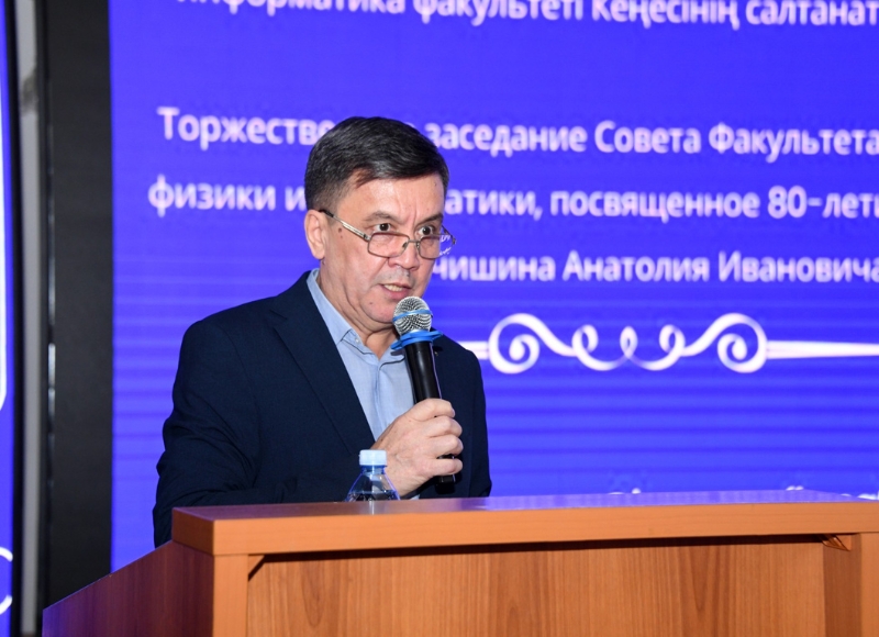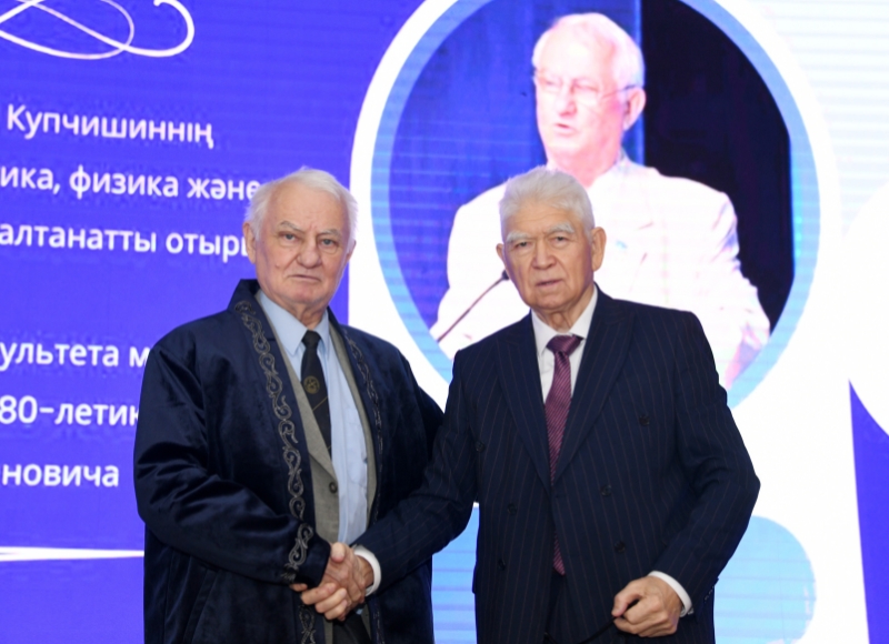 ОТМЕЧЕНО 80-ЛЕТИЕ АКАДЕМИКА В Казахском национальном педагогическом университете имени Абая состоялось торжественное мероприятие, посвящённое 80-летнему юбилею доктора физико-математических наук, профессора, академика Анатолия Купчишина. Имя учёного хорошо известно в научных кругах благодаря его исследованиям в области ядерной физики, физики элементарных частиц и излучений. На торжественном заседании совета факультета математики, физики и информатики студентам рассказали о вкладе профессора в развитие отечественной науки и его достойном жизненном пути. Проректор по исследовательской деятельности и инновациям Ертай Султанулы отметил огромный труд учёного и передал поздравление ректора университета Болата Анапияулы. «Поздравляю выдающегося учёного, педагога, воспитавшего не одно поколение исследователей, академика Анатолия Ивановича Купчишина с юбилеем. Он является ярким примером преемственности академических традиций и формирования научной школы, почётным профессором и гордостью нашего университета», — говорится в поздравительном письме Болата Анапияулы. Одним из основных научных направлений А.И. Купчишина является исследование ядерных реакций и взаимодействия частиц. Учёный теоретически и экспериментально анализировал процессы взаимодействия высокоэнергетических частиц с веществом, предложил новые методические подходы. Его труды направлены на углублённое понимание структуры атомных ядер и расширение возможностей мирного использования ядерной энергии. Учёный является автором более 300 научных статей, 3 монографий и 9 учебников, а также имеет 10 авторских свидетельств и 20 запатентованных технологий. Не уставая преподавать, он подготовил 4 докторов и 12 кандидатов наук. Тысячи его учеников сегодня работают в сфере науки и образования как в Казахстане, так и за рубежом. На торжественном заседании факультетского совета речь шла не только о научном наследии учёного, но и о его творчестве. Его ученики и коллеги с гордостью отметили, что он также является бардом-поэтом. А.И. Купчишин — член Союзов писателей СНГ, России и Казахстана, автор нескольких поэтических сборников и лауреат Золотой медали Есенина. В рамках мероприятия, посвящённого 80-летию академика, звучали его произведения и вручались различные награды. Пресс-служба КазНПУ имени Абая