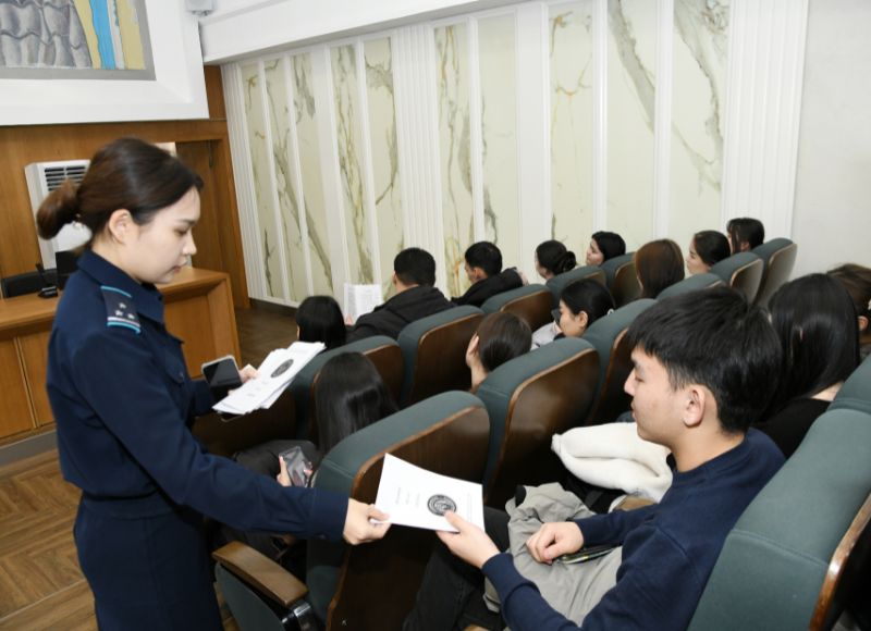 СОБЛЮДЕНИЕ ОБЩЕСТВЕННОГО ПОРЯДКА – ОБЯЗАННОСТЬ КАЖДОГО ГРАЖДАНИНА В своем Послании народу Казахстана Президент страны Касым-Жомарт Токаев, опираясь на принцип «Закон и порядок», отметил важность поддержания общественного порядка и спокойствия. В этой связи сегодня сотрудники управления полиции Жетысуского района города Алматы провели встречу со студентами Абай университета. Алматы – один из крупнейших культурно-туристических и университетских центров страны. Поэтому в этот красивый город у подножия Алатау ежегодно приезжают студенты для обучения и специалисты в поисках работы. В мегаполисе особенно актуальны вопросы поддержания общественного порядка, соблюдения законности и защиты от мошенников. Начальник подразделения по работе с личным составом управления полиции Жетысуского района Назгуль Калыкбаева рассказала студентам о важности правовой грамотности. – Так как на встрече присутствует много студентов первого курса, хочу особо предупредить вас быть осторожными с различными видами мошенничества. Сейчас активно распространяется так называемое «дропперское» мошенничество. Вам могут предложить дать свою банковскую карту, обещая крупное вознаграждение. Однако через вашу карту мошенники снимают миллионы тенге незаконных средств. И в этом случае владелец карты также несет ответственность перед законом, – подчеркнула подполковник полиции Назгуль Калыкбаева. Кроме того, она обратила внимание на частые случаи дорожно-транспортных происшествий с участием электросамокатов. С начала года в Алматы произошло 79 таких инцидентов, в результате которых пострадали 173 человека. Поскольку электросамокатами чаще пользуется молодежь, нередко пренебрегается соблюдение правил безопасности. Полицейские призвали студентов быть внимательными и не забывать о личной безопасности. Стражи порядка показали видеоролики о том, какие действия считаются нарушением закона в метро, жилых домах и общественных местах Алматы. Также подробно объяснили, как противостоять наркотикам и интернет-мошенникам. В конце встречи студенты задали полицейским вопросы и получили исчерпывающие ответы. Они отметили, что если каждый гражданин будет придерживаться принципа «Закон и порядок», в обществе будут царить мир и спокойствие.