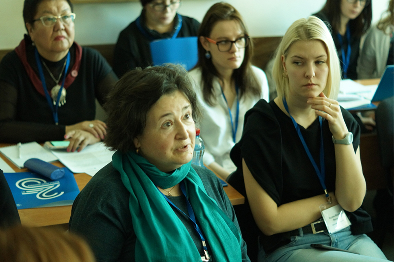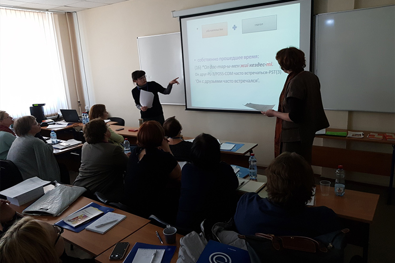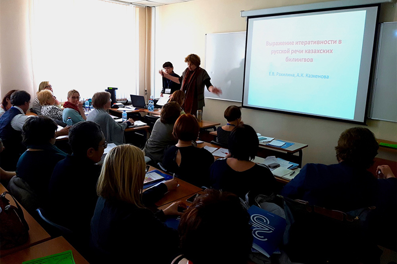 На конференции был представлен совместный доклад руководителя Школы лингвистики профессора Екатерины Рахилиной и к.ф.н., профессора кафедры русского языка и литературы КазНПУ имени Абая Аимгуль Казкеновой "Выражение итеративности в русских текстах казахских билингвов". Доклад был посвящен описанию материала казахского подкорпуса, а именно того, как значение повторяющегося действия выражается в русской речи казахских билингвов и как это может дополнить типологические исследования.