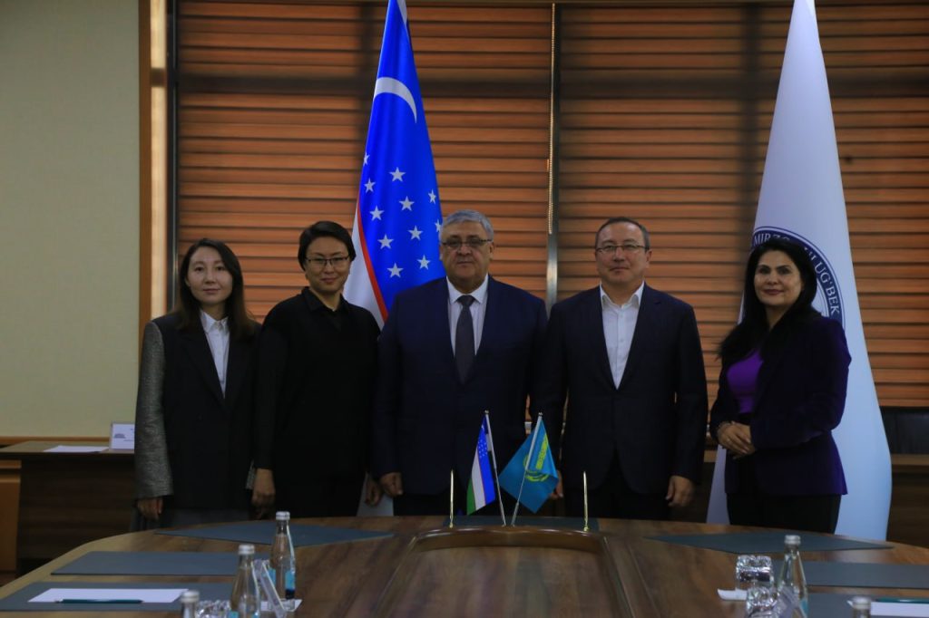 УКРЕПЛЕНИЕ СТРАТЕГИЧЕСКОГО ПАРТНЕРСТВА С НАЦИОНАЛЬНЫМ УНИВЕРСИТЕТОМ УЗБЕКИСТАНА 24 ноября в Ташкенте состоялась официальная встреча председателя Правления – ректора Казахского национального педагогического университета имени Абая Болата Тилепа и ректора Национального университета Узбекистана имени Мирзо Улугбека Инома Маджидова. В мероприятии приняли участие проректоры по международным связям и научной работе, деканы факультетов обоих университетов, обсуждавшие пути дальнейшего укрепления сотрудничества в сфере образования и науки. Стороны отметили необходимость совместного развития инициатив в сфере высшего образования, обозначив общие цели по разработке магистерских программ с двойными дипломами, расширению академической мобильности, повышению квалификации преподавателей и углублению научных исследований в области педагогики, химии, физики и математики. На данный момент уже видны первые результаты сотрудничества. Студенты КазНПУ проходят обучение в Национальном университете Узбекистана в рамках программы внешней академической мобильности. Кроме того, ученые обоих университетов проводят совместные исследования по управлению гиперболическими системами и теории устойчивости дифференциальных систем, результаты которых опубликованы в пяти статьях в журналах Q1 и Q2 базы Scopus. Разработана концепция нового научного проекта на 2026–2028 годы «Численное исследование задачи граничного управления для многомерных симметричных гиперболических систем», реализация которого начата под руководством профессора А.Бердышева. В ходе переговоров рассматривались возможности расширения академической мобильности студентов и аспирантов, усиления взаимодействия научных руководителей, а также запуска программ двойных дипломов в формате 1+1 по направлениям «Химия», «Физика» и «Математика». По итогам встречи срок действия Меморандума о сотрудничестве между университетами был продлен, что открывает новый этап стратегического партнерства Казахстана и Узбекистана в сфере науки и образования. Данное соглашение отражает высокий уровень взаимного доверия и общих интересов в развитии регионального научно-образовательного пространства. Пресс-служба