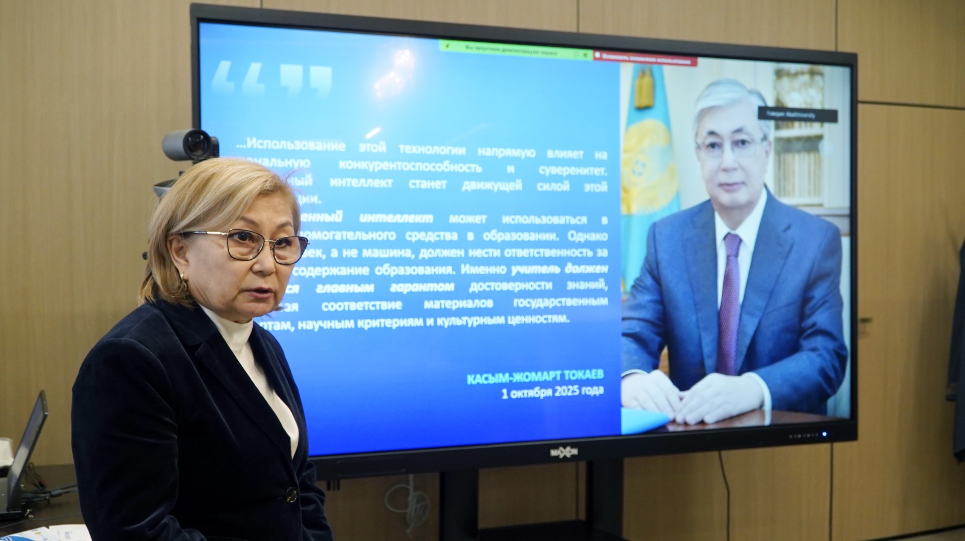 Основной темой заседания стало внедрение искусственного интеллекта в образовательную систему и определение новых подходов к подготовке педагогических кадров. Первый заместитель министра образования и науки Республики Казахстан Майра Мелдебекова выступила с онлайн-приветственным словом и открыла важную встречу.