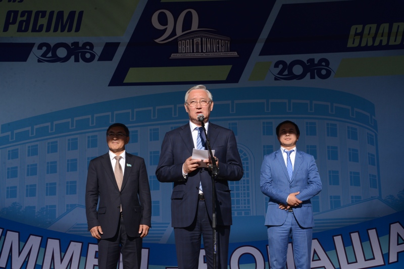 На торжественном вечере ректор университета Такир Балыкбаев рассказал о достижениях университета в подготовке конкурентоспособных профессионалов и пожелал выпускникам университета удачи. Депутат маслихата города Алматы, член Совета университета Кенжехан Матыжанов и заместитель акима Медеуского района Гани Майлыбаев также поздравили выпускников с успешным завершением учебы.