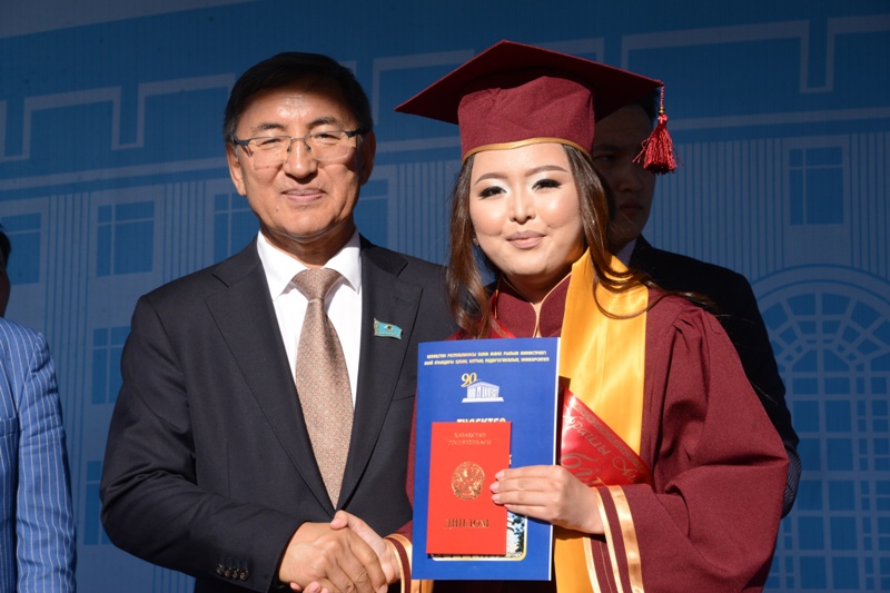 Ректор Такир Балыкбаев вручил дипломы с отличием, а директора институтов вручили дипломы своим выпускникам.