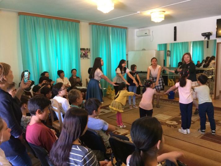 Студенты специальности «5B011900- Иностранный язык: два иностранных языка» пели песни Абая на казахском и английском языках, танцевали с детьми, задавали вопросы о великом Абае.