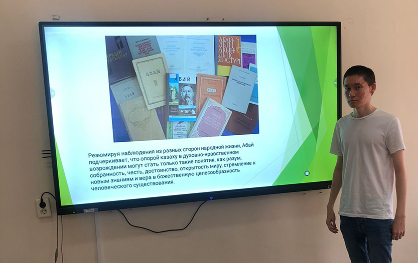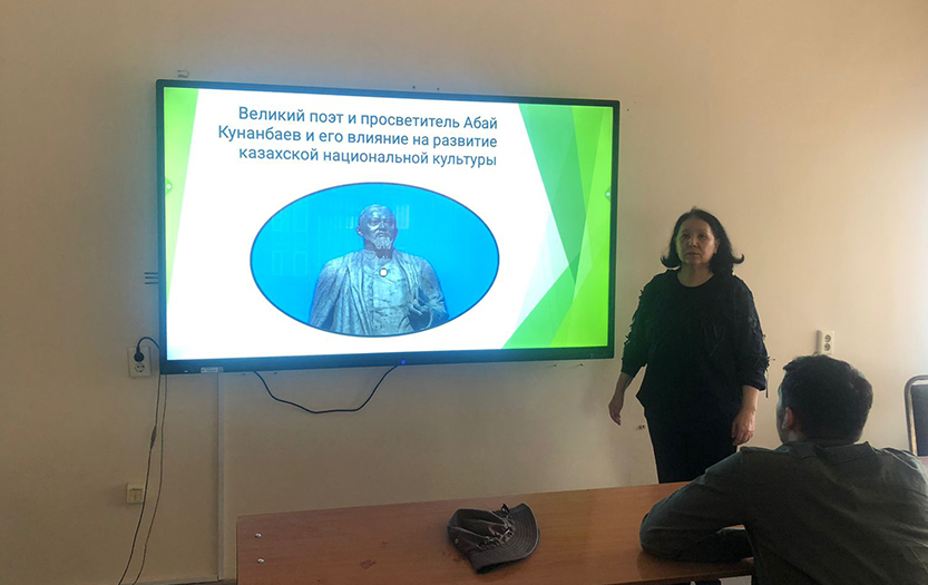14 апреля 2022 года в рамках Декады науки на кафедре Всемирной истории Института истории и права КазНПУ имени Абая состоялось мероприятие на тему «Великий поэт и просветитель Абай Кунанбаев и его влияние на развитие казахской национальной культуры», организованное студентами 1-го курса специальности «6В01606-История-география», 3-го курса специальности «6В02202-История научная» и эдвайзером группы Джайнакбаевой Г.Т.