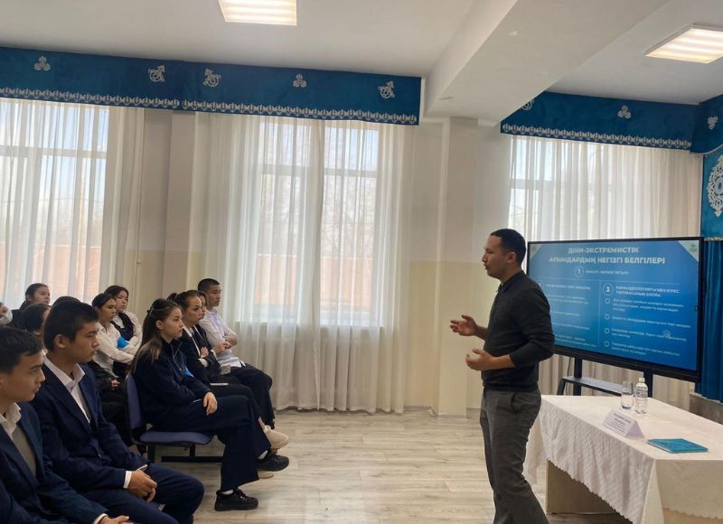 10 декабря 2024 года старший преподаватель кафедры Всемирной истории Института истории и права Мамырбаев Дидар совместно со студентами 1 курса группы 102 специальности «6В02209 История-География» провел семинар на тему «Религиозная грамотность» в средней школе №43 имени Мухаметжана Туймебаева, расположенной в городе Алматы. Кроме того, с учеником 9 класса лицея №249 имени Е.С. Бозгулова, расположенного в селе Айтеке би Казалинского района Кызылординской области, Едилулы Ансаром был проведен диалог для подготовки к олимпиаде на тему «Цели религиозного экстремизма и терроризма».
