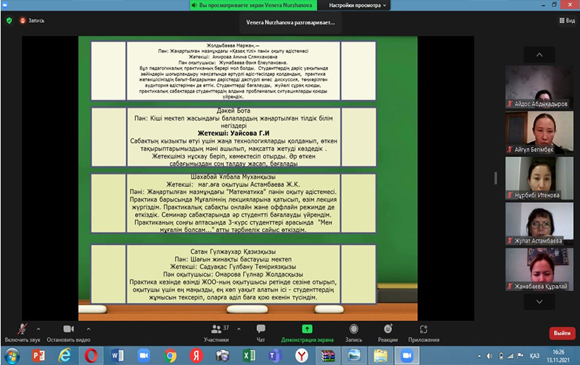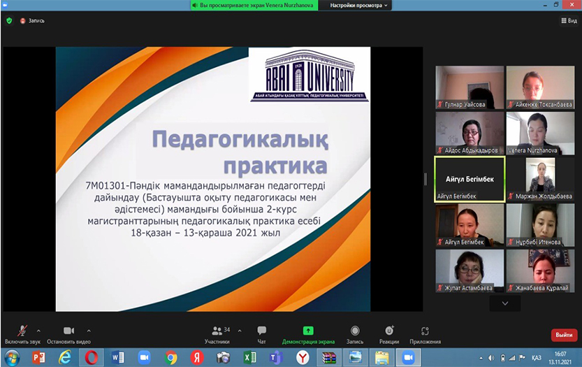 13 ноября 2021 года прошла конференция по итогам педагогической практики магистрантов 2-курса специальности «7М013-Педагогика и методика начального обучения» Института педагогики и психологии.