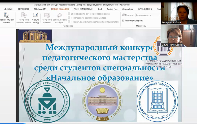 Отдел профессиональной подготовки ОП «Начальное образование» Института педагогики и психологии КазНПУ имени Абая ежегодно проводит международный конкурс педагогического мастерства среди студентов. Каждый год география конкурса разная. В этом году приняли участие команды из Пермского государственного гуманитарно-педагогического университета, Алтайского государственного гуманитарно-педагогического университета им. В.М.Шукшина, Дагестанского государственного педагогического университета (Россия) и Казахского национального женского педагогического университета.