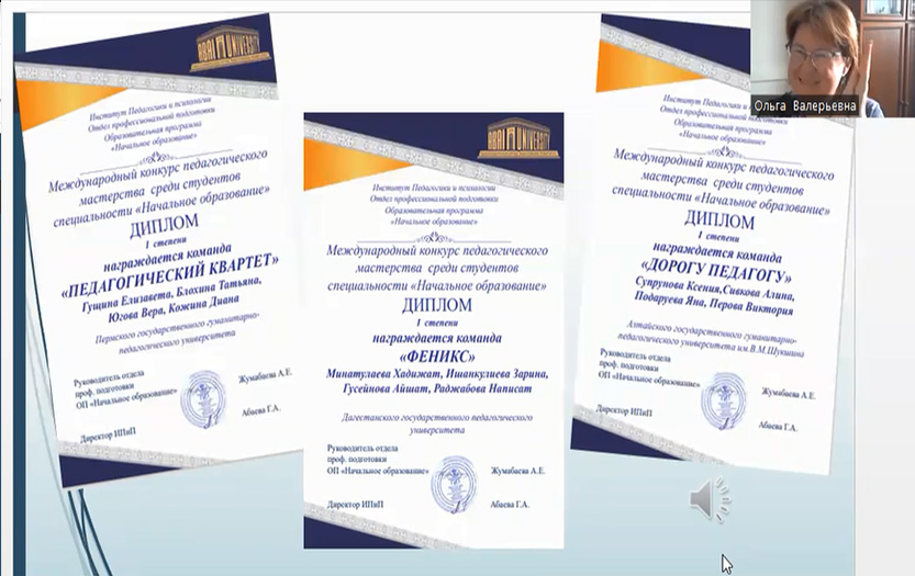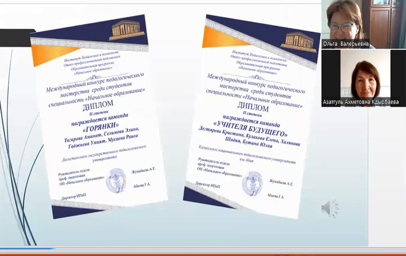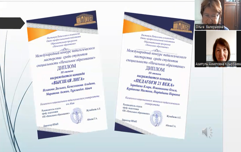 Поздравление студентов прошло в онлайн-формате. Кдырбаева Азаткуль отметила необходимость проведения такого конкурса, творчество студентов и их зарождающееся педагогическое мастерство.