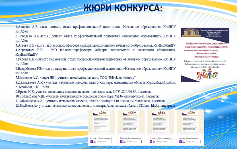 II Республиканский детский конкурс краеведческих математических задач для младших школьников им. профессора Т.Оспанова