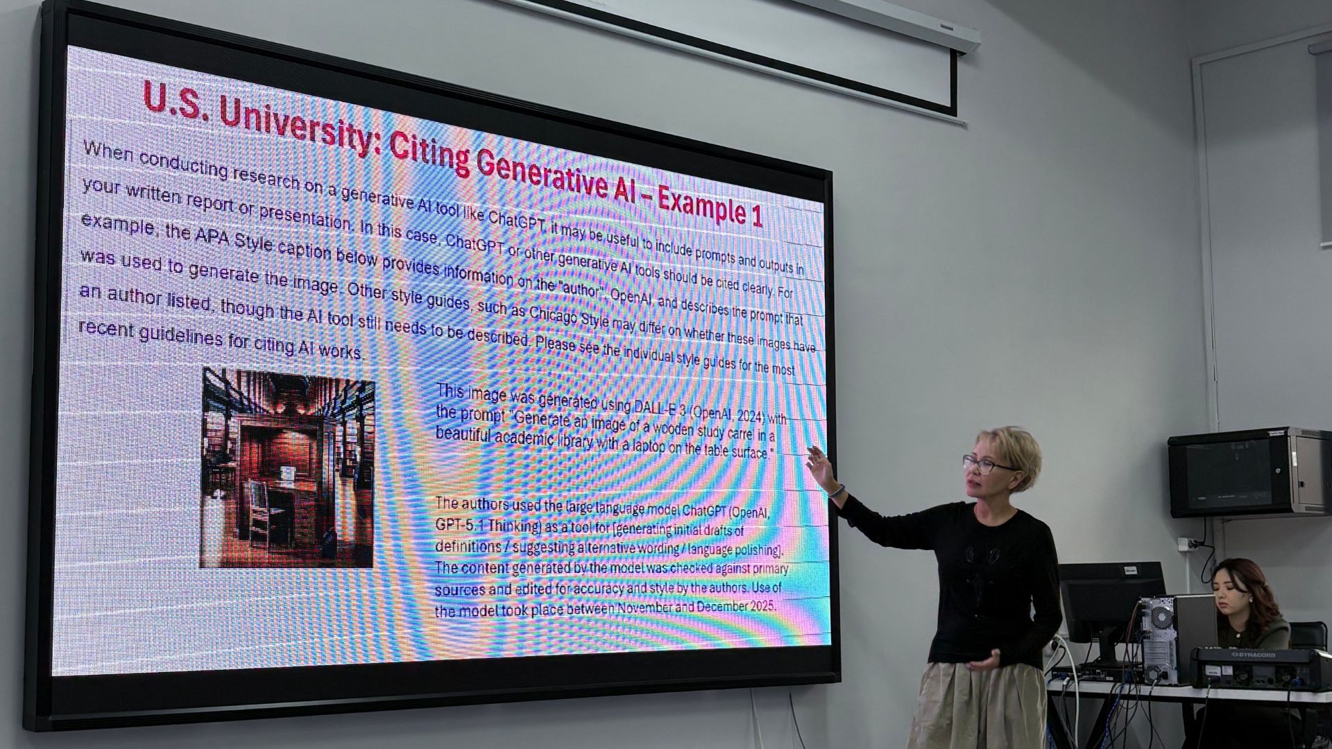 ПРОФЕССОР УНИВЕРСИТЕТА КЕНТУККИ (США) БАХЫТ АЛИПОВА ПРОВЕЛА WORKSHOP ПО ГЕНЕРАТИВНОМУ ИИ/span> «На кафедре «Начальное образование» состоялся научно-практический Workshop, посвящённый эффективному использованию генеративных ИИ-технологий в исследовательской и образовательной деятельности. Мероприятие провела профессор Университета Кентукки (США), PhD Бахыт Алипова. В ходе Workshop профессор Алипова поделилась современными методиками работы с ИИ, показала, как разрабатывать результативные prompts и использовать интеллектуальные системы для подготовки исследовательских предложений и научных текстов. Особое внимание было уделено вопросам этики, корректного цитирования ИИ-материалов и построения структурированных frameworks для аналитических проектов. Интерактивный формат Workshop позволил участникам выполнить практические задания, создать собственные prompts, протестировать их в реальном времени и обсудить пути повышения точности и релевантности генерации. Преподаватели и обучающиеся отметили, что представленные материалы отличаются высокой практической ценностью и отражают международные тенденции цифровой трансформации образования. Workshop стал значимым событием, расширившим профессиональные знания и компетенции участников в области генеративного ИИ, и подтвердил важность интеграции современных технологий в образовательный процесс.