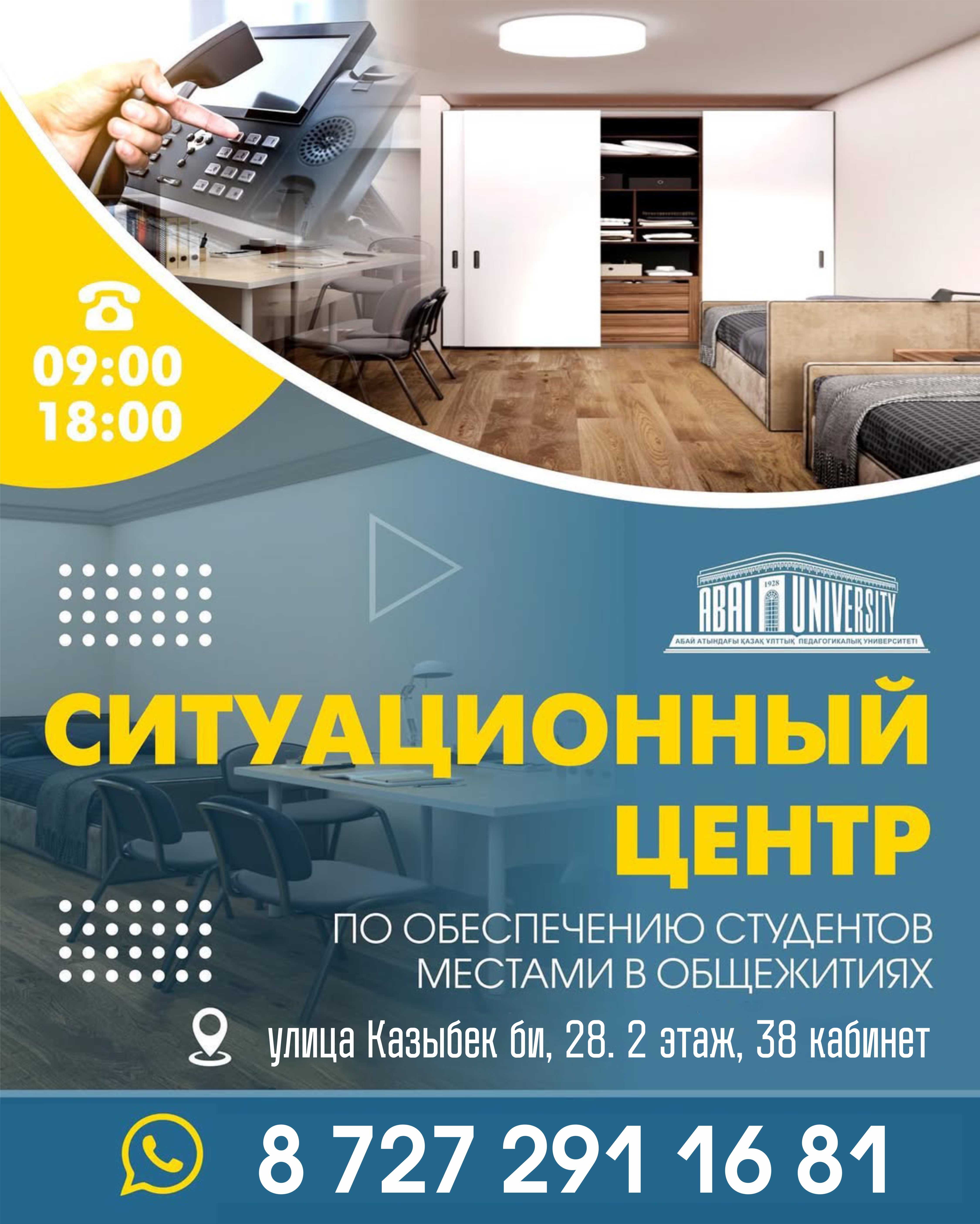 10.07.2025 В Abai University запущен «Ситуационный центр» для размещения обучающихся в общежитиях Уважаемые обучающиеся!